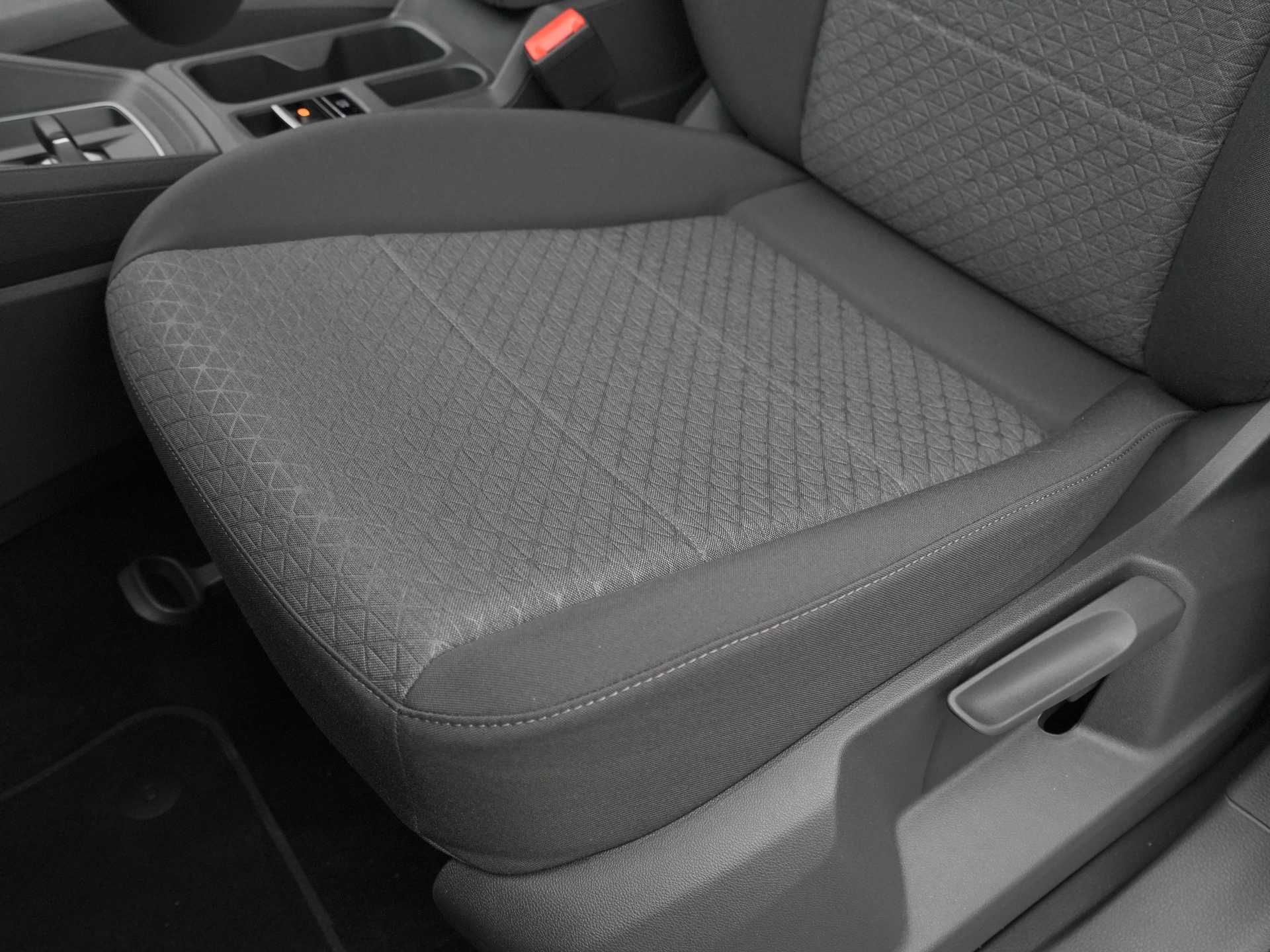 Stoff-Polsterung in Anthrazit mit grauen Ziernähten