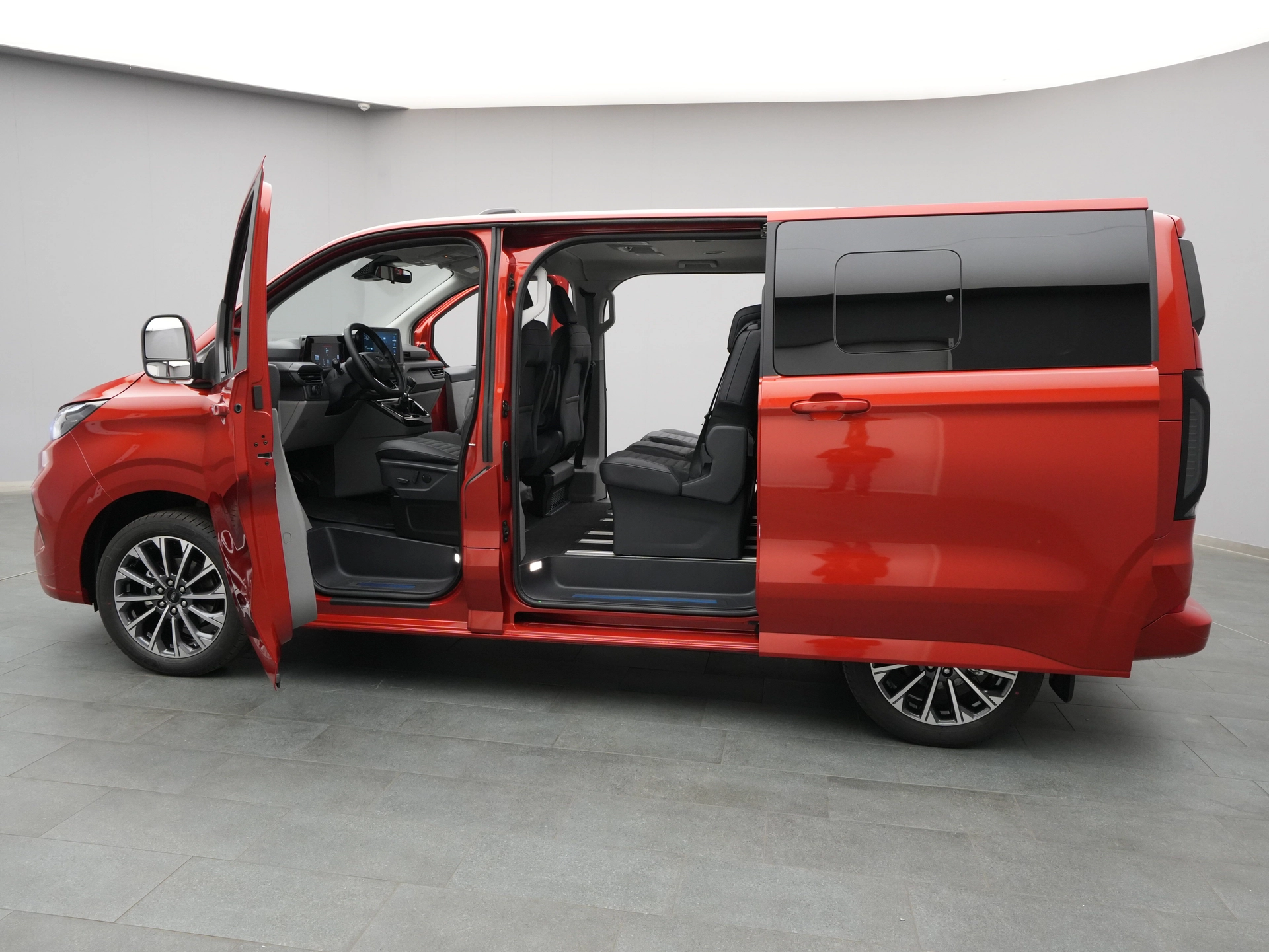 Schiebetür, rechts und links, inkl. Sonnenschutzrollos in der 2. Sitzreihe