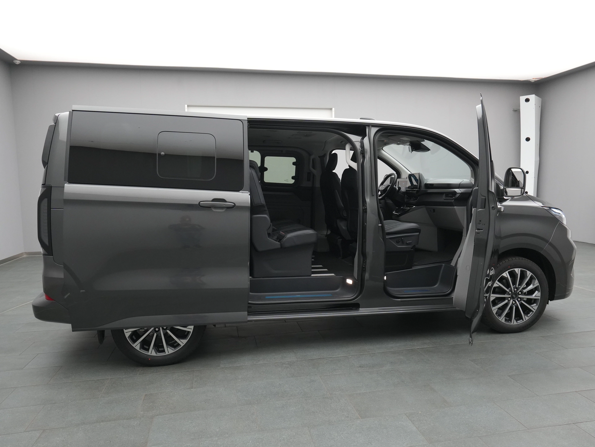 Schiebetür, rechts und links, inkl. Sonnenschutzrollos in der 2. Sitzreihe
