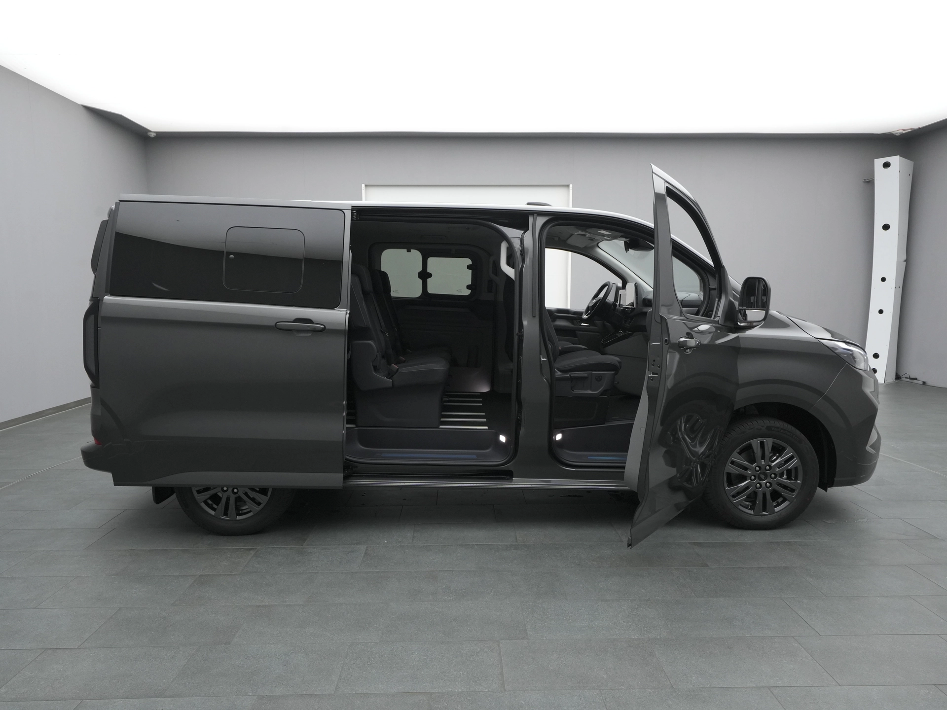 Schiebetür, rechts und links, inkl. Sonnenschutzrollos in der 2. Sitzreihe