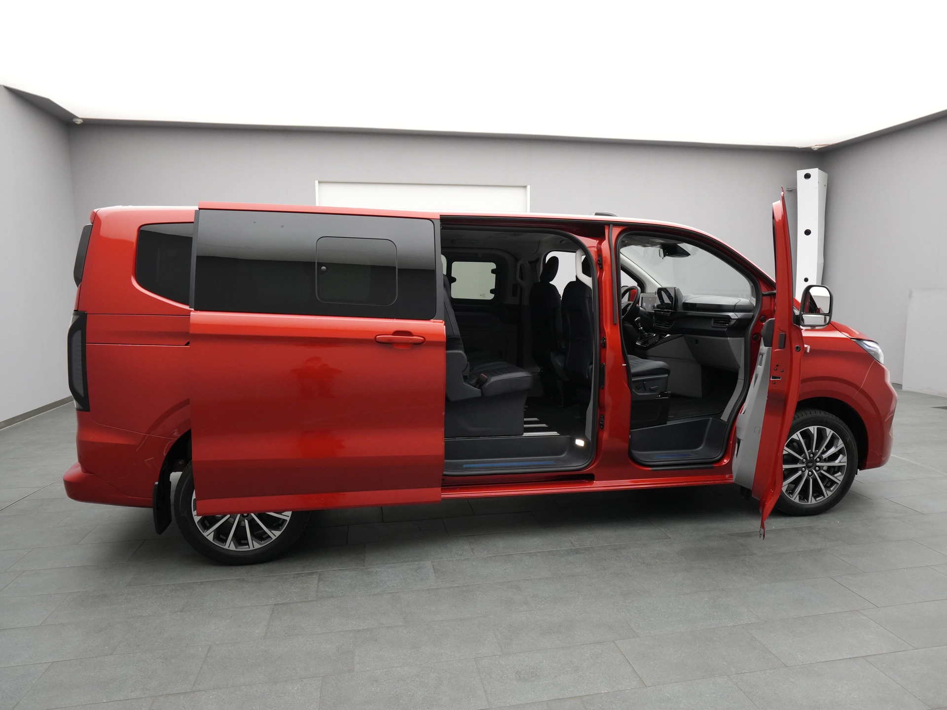 Schiebetür, rechts und links, inkl. Sonnenschutzrollos in der 2. Sitzreihe